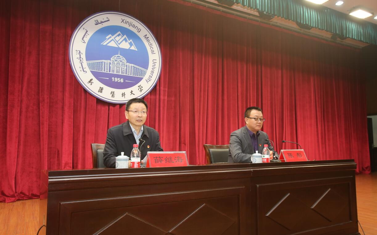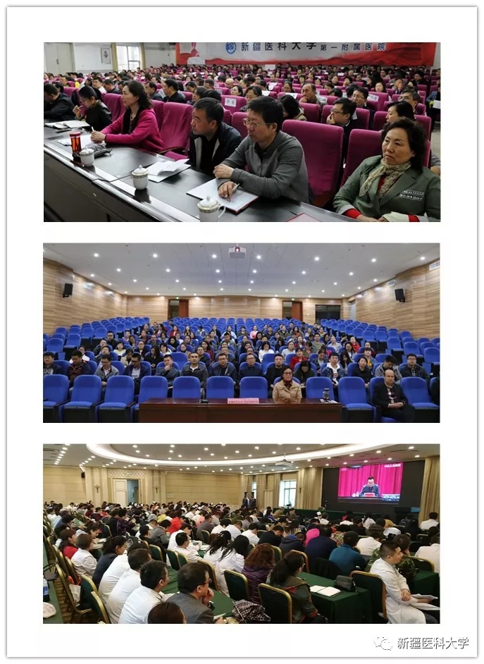 校本部教职工在临床教学楼800礼堂现场聆听,各附属医院、克拉玛依学院等单位通过视频系统在分会场收听了讲座。