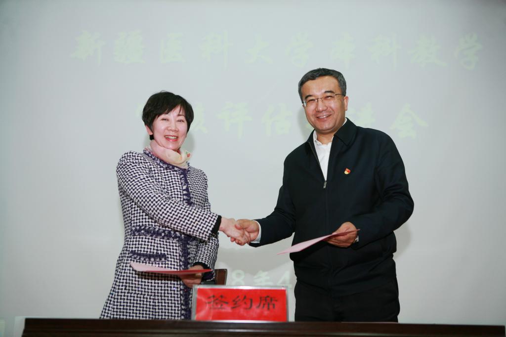会上,姚文兵副校长带领大家再次学习了领会了审核评估指标体系的要义,明确了学校下一步工作的重点。刘继文主任通报的重点是围绕课程考试档案和专题实习(毕业论文/设计)专项检查情况。凯赛尔·阿不都克热木校长分别与中医学院、基础医学院、第一临床医学院主要负责人签订了责任状,切实增强“校兴我荣,校衰我耻”的使命感,使每个新医大人都树立“评建工作,人人有责”的强烈意识。