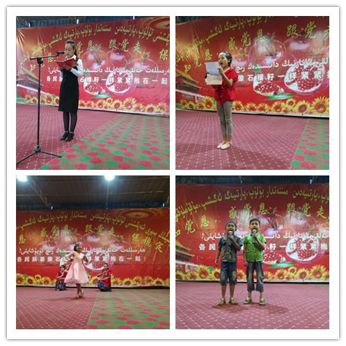 庆祝活动在《我们在新疆》的欢快舞蹈中拉开了帷幕,演讲《感谢祖国妈妈》、诗朗诵《中华民族一家亲》、小合唱《读书郎》、健美操《哇卡哇卡》、才艺展示等小朋友自编自导的节目,一次又一次将活动推向高潮,特别是当“人之初,性本善;性相近,习相远;”的朗朗读书声响起的时候,台上台下一个声音,观众席也成为了表演的舞台,大家一起诵读国学经典《三字经》,传达着“仁,义,诚,敬,孝。”的国学精神。孩子们用自己稚嫩的声音、欢快的舞蹈表达着对伟大祖国的认同,对中华文化的认同。阵阵的掌声是对库提热木小学积极向上的精神面貌的肯定,是对一年来优秀传统文化教育取得丰硕成果的肯定,也是向开展南疆双语支教工作交上的最好答卷。
