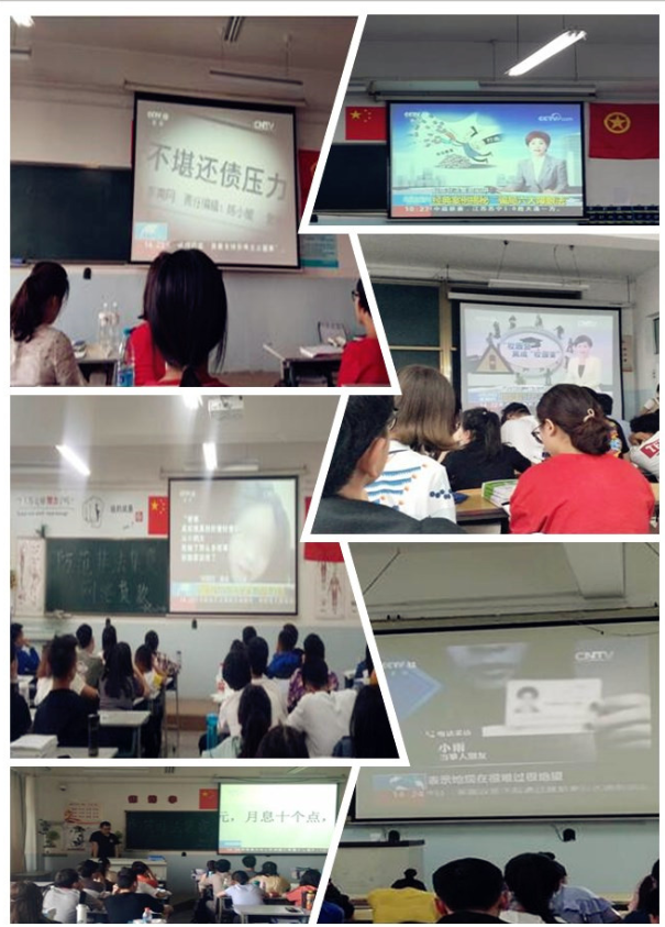班会上组织学生观看了《校园贷莫成校园害》和《经典案例揭秘骗局六大障眼法》及《大学生贷款》的相关视频。各班还结合一些其他的常见诈骗案例,提醒同学们在防范校园贷款风险的同时,也要留意诸如网络兼职、电信诈骗等陷阱。希望同学们能够提高警惕、加强防范意识,遇到困难首先应该及时和班主任及“三进两联一交友”老师联系,共同想办法解决,不要轻易相信他人,以免造成伤害。