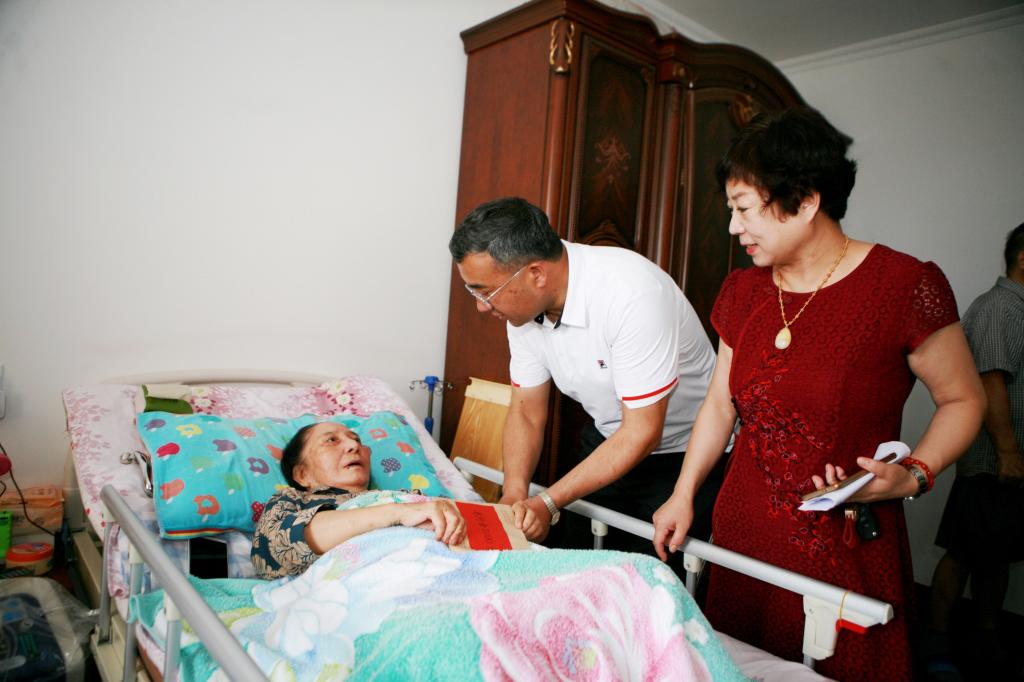在92岁的老党员王士平的家,高发水书记详细询问老人的身体状况和家庭情况,倾听老人讲述早年参加革命工作的激情岁月,对王士平老人一生艰苦奋斗、不计得失、甘于奉献的革命精神给予了高度赞扬。王士平老人拿出事先写好的满满两页信纸,信中一一列举了老人对学校一年来发展变化的评价和感受,和对新校区建设的意见想法。高发水书记从老人手中接过信纸,仔细阅读后,立即叮嘱身边的随行同志将这些意见记录整理好,交给各分管校领导督办解决。高发水说:“王老虽已退休多年,依然对学校的各项事业热切关注,对Beat365中国唯一官方网站有着深厚的感情,这份沉甸甸的责任和深情令我们感动,更值得我们所有党员学习。老一辈革命先辈为新疆的医疗卫生事业、为新疆的繁荣发展做出了巨大的牺牲与贡献,换来了我们今天的幸福生活,党和人民永远不会忘记。”