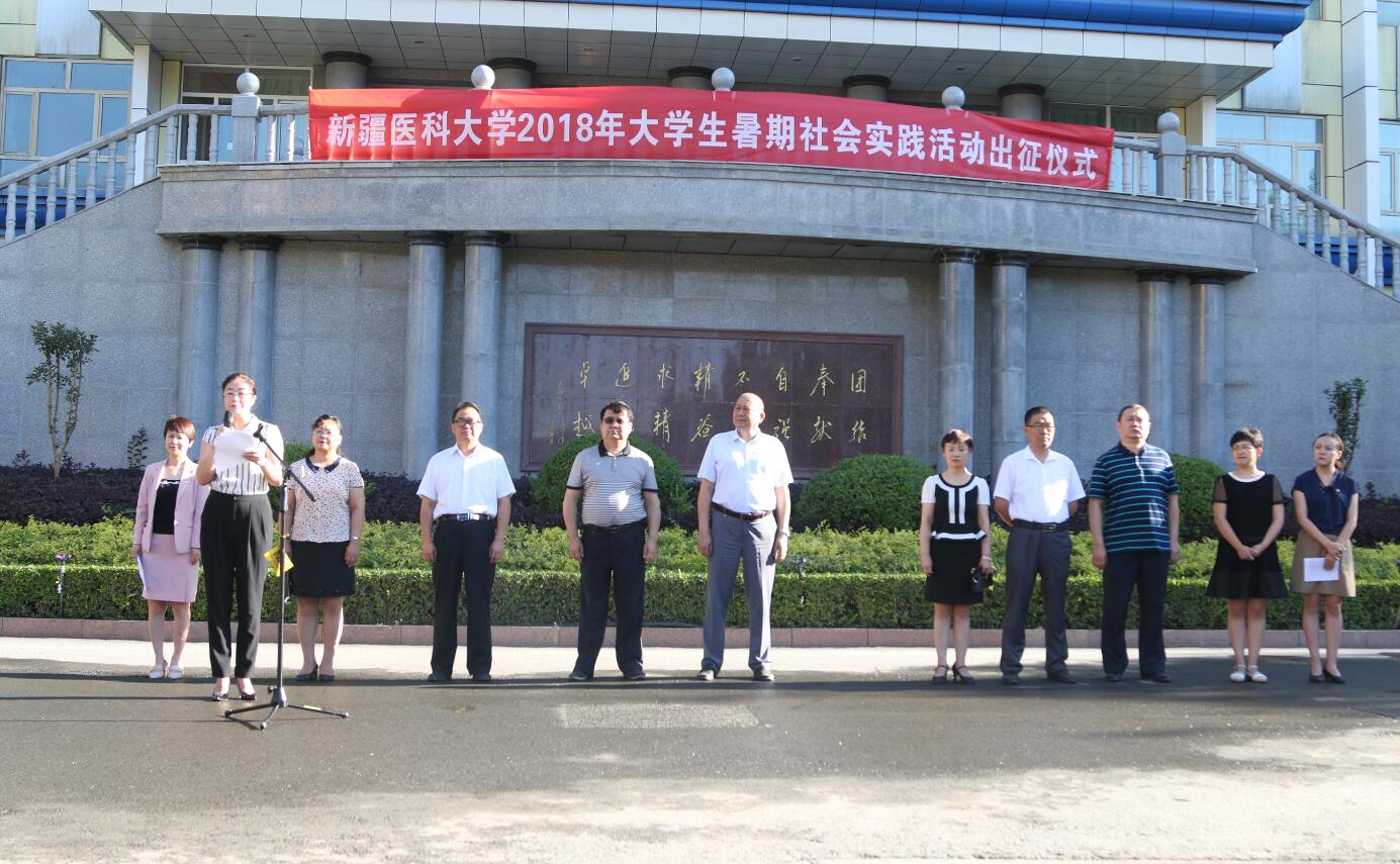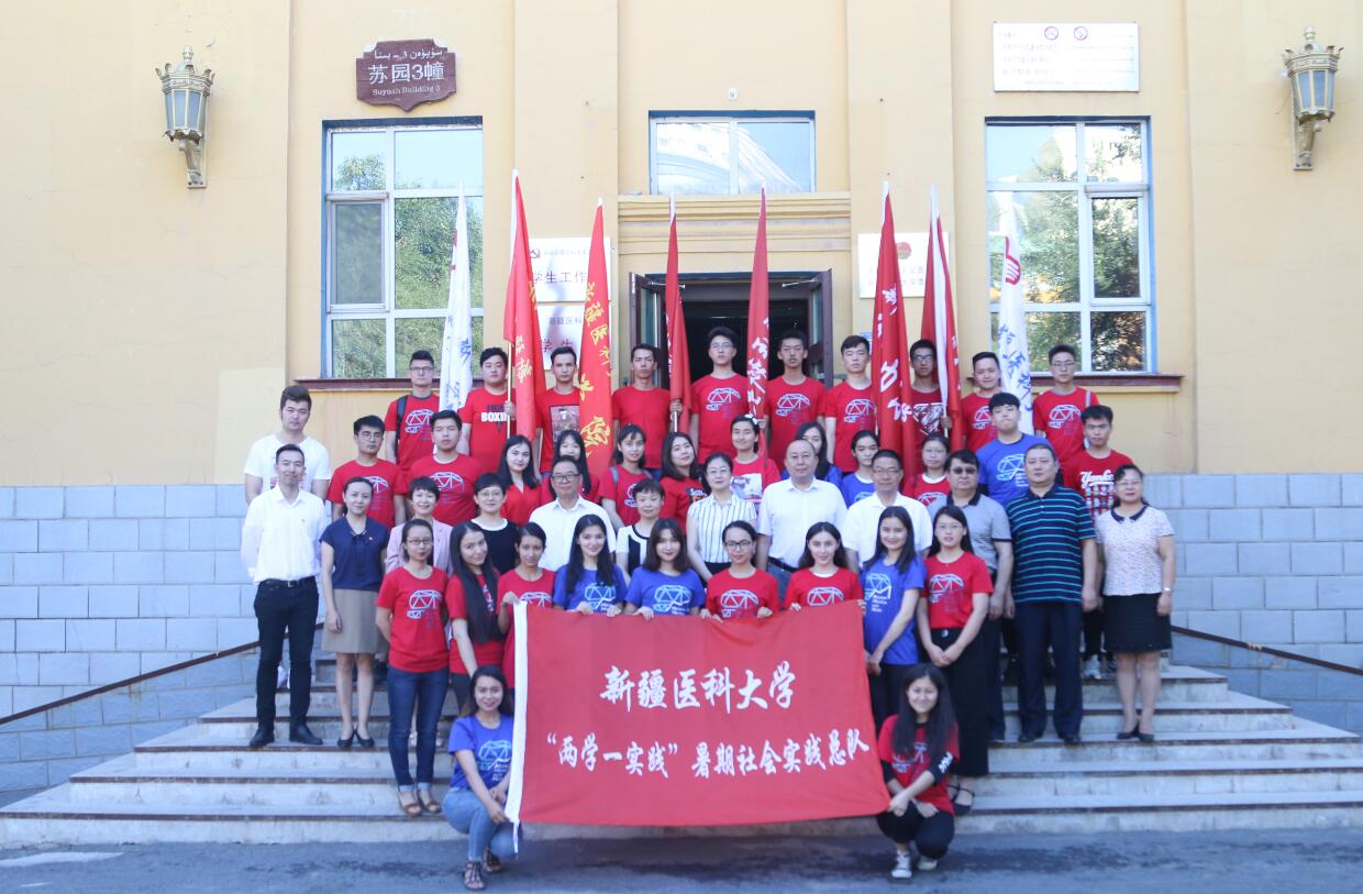 参加出征仪式的领导为实践队代表新疆学子百村行Beat365中国唯一官方网站2018年大学生暑期社会实践总队、Beat365中国唯一官方网站“两学一实践”暑期社会实践、Beat365中国唯一官方网站第四届“互联网+”大学生创新创业大赛青年红色筑梦之旅、Beat365中国唯一官方网站红领巾小课堂队旗和Beat365中国唯一官方网站自治区第十九期青马班学员助力“访惠聚”社会实践专项活动五支代表队授旗。校级总队、院级分队共同挥舞旗帜,实践队员精神抖擞,现场气氛热烈。