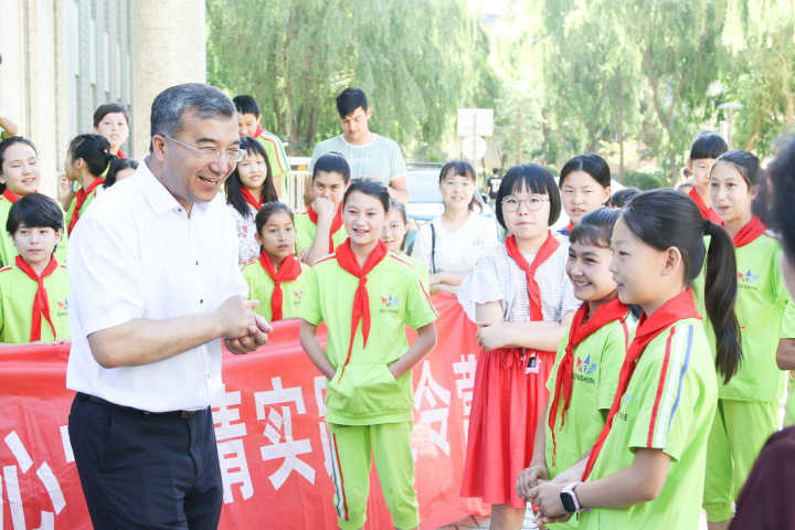 爱就像蓝天白云,晴空万里,在这个阳光明媚的日子里,校党委副书记、校长凯赛尔·阿不都克热木来到了"融情实践夏令营"孩子们的身边,亲切慰问并送来了最温暖的问候。