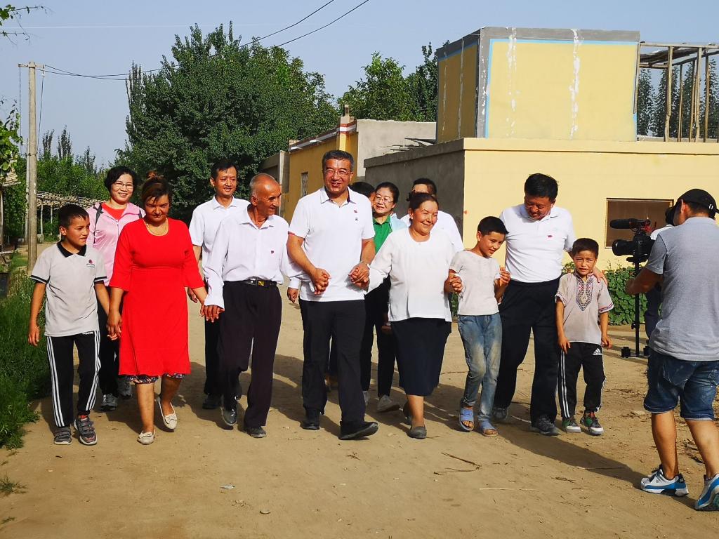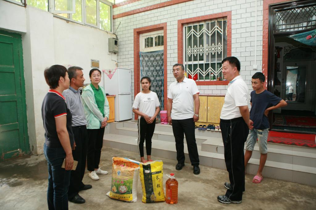 炎炎夏日,瓜果飘香,在我区各族群众共同欢度古尔邦节的美好日子里,Beat365中国唯一官方网站党委副书记、校长凯赛尔•阿不都克热木一行先后走访慰问了Beat365驻墨玉县各“访惠聚”驻村工作队、村民党员、结对亲戚和新医学子,向他们表达节日的衷心祝福,并送去校党委的关怀和温暖。他在慰问时强调,要把学习贯彻习近平新时代中国特色社会主义思想作为首要政治任务,团结各族群众,不断增强“四个意识”,着力巩固和发展民族团结、社会稳定、民生改善、脱贫攻坚的良好局面,为实现新疆社会稳定和长治久安做出新医人更大的贡献。