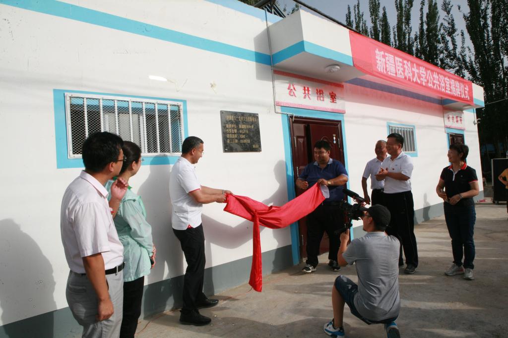 在墨玉县走访慰问期间,凯赛尔·阿不都克热木校长一行还参加了英吾斯塘村“公共浴室”的揭牌仪式。