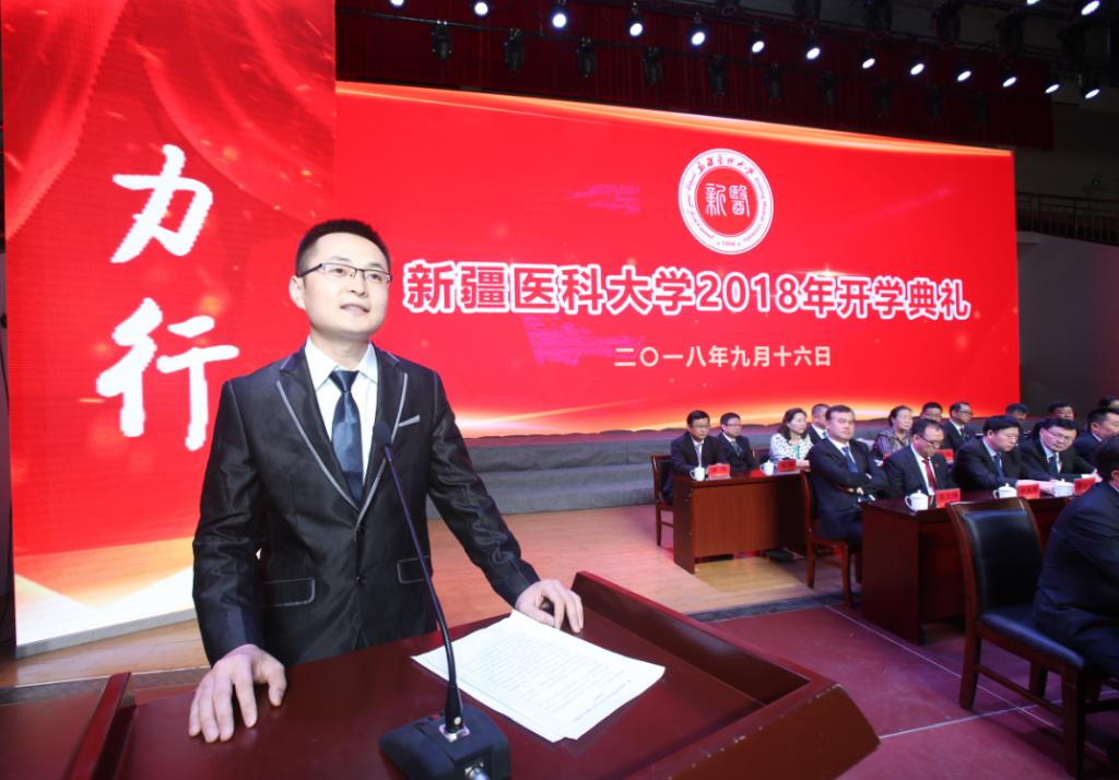 大会以视频会议的形式开启了新医大历史上首次各校区同步开学典礼的先河。校党委书记高发水在校本部体育馆主会场开讲新生第一课;校党委副书记、校长凯赛尔•阿不都克热木致辞。姚文兵副校长主持开学典礼。