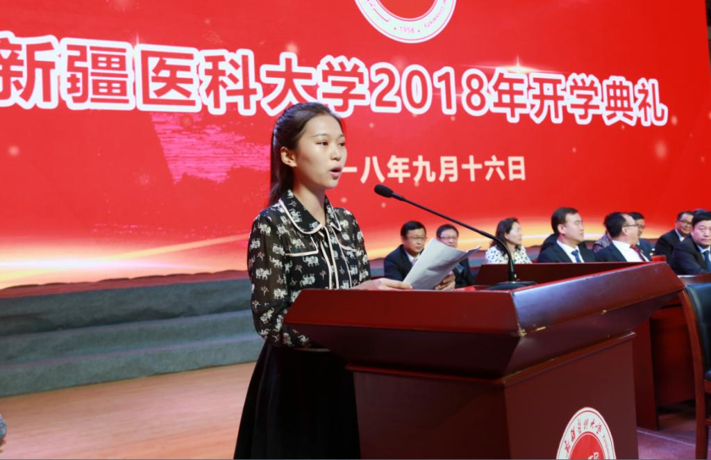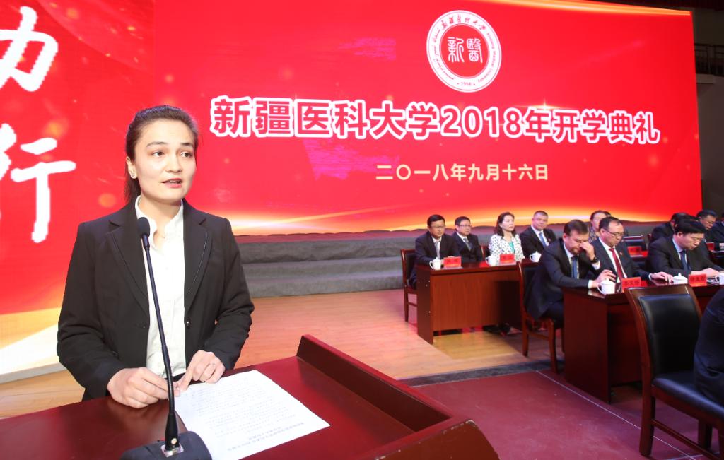 来自第一临床医学院的研究生谢天宇同学代表在校生发言。他与新同学分享了自己的大学经历及感悟,希望大家积极融入新的生活和学习当中,珍惜时间,认真学习,沉淀自我,学会思考,全面发展,传承新医优秀的文化基因。2018级研究生新生哈米拉·普尔凯提、校本部2018级本科新生阿里木江·阿不都热依木、克拉玛依学院2018级本科新生吉祥分别发言。新生们在发言中表达了进入Beat365中国唯一官方网站习的喜悦和对即将展开的崭新大学生活的向往,大家表示将谨记“好学、力行、笃医、创新”的校训,争做品学兼优的新医人。表示作为怀揣未来梦想、承载亲人希望的新医学子,一定会不断努力,向着未来的方向扬帆起航。
