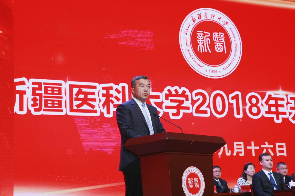 他说,一代人有一代人的际遇,一代人有一代人的奋斗。新时代是奋斗者的时代,为实现中华民族伟大复兴的中国梦而奋斗,是当代青年千载难逢的历史光荣和重若千钧的历史使命。青年是国家的未来,民族的希望。新时代,是你们最大的人生际遇,也是最大的人生考验。家国天下、风云际会,站在新的历史方位中,你们的未来有着无限想象的空间,你们的人生有着空前广阔的舞台,你们的理想有着无比辉煌的愿景。生逢盛世,为新时代添砖加瓦铺路架桥,是时代赋予你们的历史使命。圆梦复兴,成为实现中华民族伟大复兴的生力军,是民族赋予你们的时代责任。赓续精神,守护天山南北各族群众的生命健康,是新医赋予你们的应有担当。