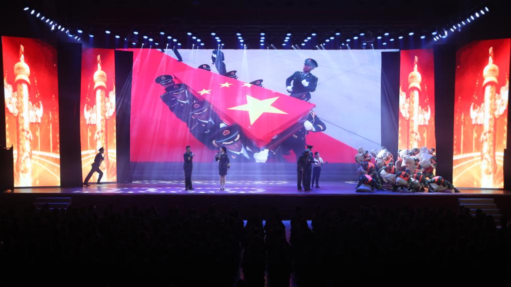 每一段旋律都激荡热血交响,每一个节目都写满奋勇荣光。一首《过雪山草地》,悠扬的歌声配合演员精彩的表演,展现了红军在恶劣环境中的革命乐观主义精神和“不怕难”的钢铁意志,场下观众仿佛与红军将士一同在雪山和草地间艰难跋涉,让人为之动容。《大刀进行曲》中演员手持大刀,矗立在舞台中央,浑身散发出使敌人不寒而栗的勇猛之气,坚定的眼神果敢有力,一句句铿锵的唱词如同战斗的号角,催人奋进。台下观众一次次鼓掌。接着《我站立的地方就是中国》《为了谁》等一首首经典名曲生动展现了边防战士脚踏国土守卫国门的情怀,深情讴歌了人民子弟兵在和平年代的奉献精神与使命意识,句句感人肺腑。随后,一首《祖国不会忘记》,通过情景还原,配合LED屏幕同步播放的经典电影画面,观众们仿佛跟随王学礼、李锡贵等众多英模的脚步,到了那个战火纷飞的年代。他们把自己的青春热血献给了自己深爱着的祖国。场下观众们纷纷鼓掌表达对革命先辈的无限缅怀和景仰之情。由官兵自己编排的《主席的话儿记心上》,在动听的歌声中,荡漾着对伟大领袖至亲至切的热爱之情与无限景仰,浸透着官兵坚定的信念与担当强军重任的勇气和信心。