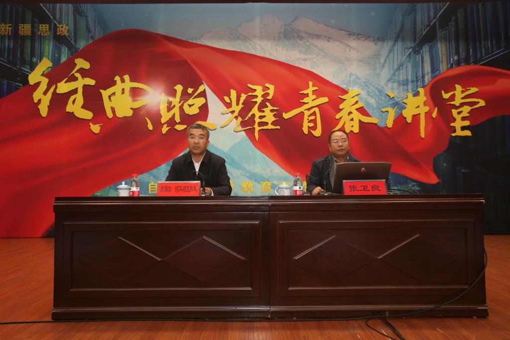 名家引领成长,经典照耀青春。10月10日下午,自治区2018年秋季“经典照耀青春讲堂”第3讲在Beat365中国唯一官方网站开讲。中南大学马克思主义学院院长张卫良教授作了题为《文化自信 文化强国》的讲座。校党委副书记、校长凯赛尔·阿不都克热木主持讲座。
