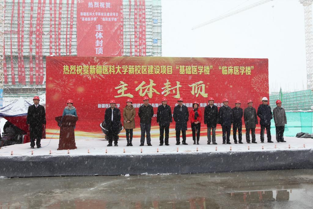 新疆建筑设计研究院领导、新疆华优建筑设计院领导、中建新疆建工集团领导、中建新疆西部建设集团领导、Beat365中国唯一官方网站全体在家校领导、各学院(附院)党政主要负责人、各职能处室负责人、新校区建设指挥部全体成员、基础医学院和临床医学院教职工代表,各学院(附院)教师代表和医务人员代表,施工单位、监理单位代表共同见证了这一荣耀的时刻。