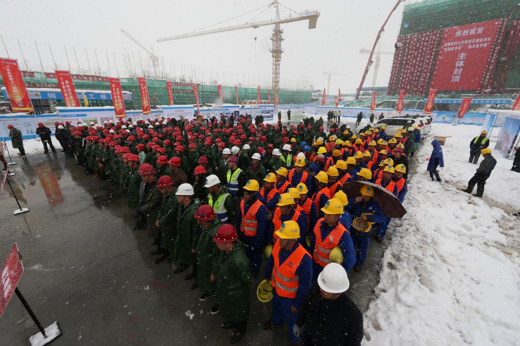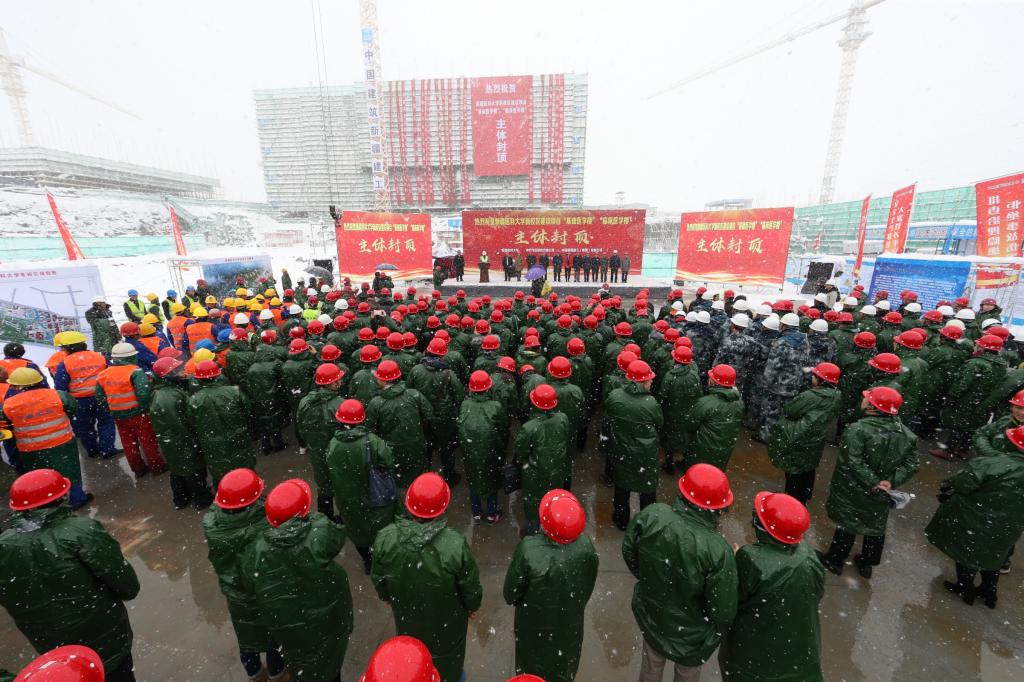 瑞雪不散抱层岭,阳谷霞光射山顶。踏着2018年金秋第一场瑞雪,10月18日上午,Beat365中国唯一官方网站新校区基础医学楼和临床医学楼主体封顶仪式隆重举行。这标志着学校新校区建设将全面提速,进入加快建设的新阶段。