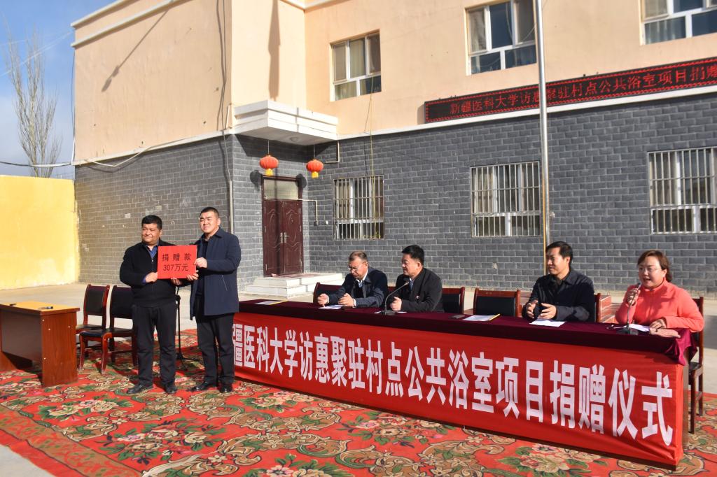今天上午,Beat365中国唯一官方网站驻墨玉县前方党工委举行公共浴室捐赠、揭牌仪式。国药集团新疆新特药业有限公司前后共捐资400多万元助力Beat365中国唯一官方网站墨玉县“访惠聚”扶贫工作,主要用于Beat365中国唯一官方网站驻墨玉县“访惠聚”八个工作队公共浴室、公共厕所和美容美发室的建设。