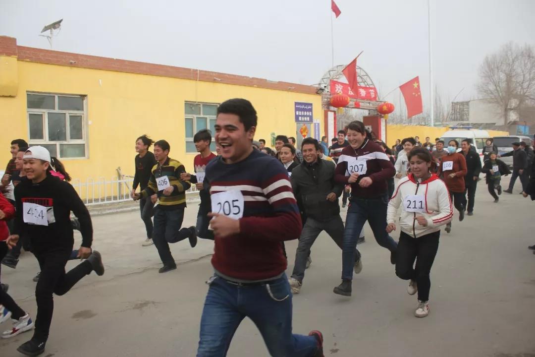 凯赛尔·阿不都克热木校长宣布比赛开始,100名托格拉克村村民,50名结亲干部,5名工作队员组成的长跑队伍,迈着矫健的步伐,以饱满的热情,昂扬的斗志,以奋斗之姿开启新年新的征程。