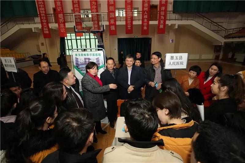 招聘活动前,校党委常委、副校长再那吾东·玉山为同学们介绍托管医院的发展状况,鼓励同学们树立科学的就业观念和择业观念,主动到基层医院就业,用自己精湛过硬的技术、大爱无疆的品质、奉献付出的精神为新疆的社会稳定和长治久安做出自己的贡献。随后,各招聘单位为同学们奉上了精心准备的宣讲推介,通过医院宣传片、宣讲幻灯片等,从医院沿革、发展规划、医院特色、人才引进等几个方面对医院做了全面推介,极大提升了毕业生对单位的认知度,为后续现场签约、就业意向的达成奠定了良好基础。
