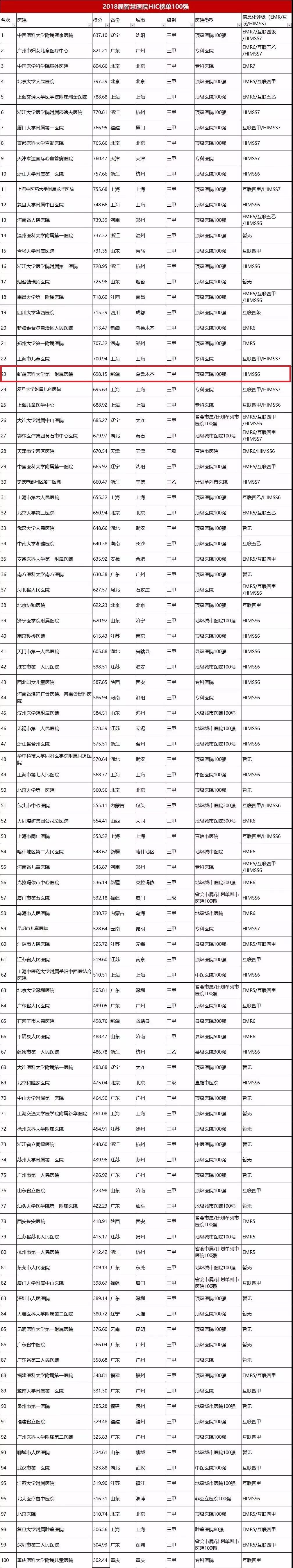 在《2018智慧医院HIC榜单100强排行榜》名单中,Beat365中国唯一官方网站第一附属医院是新疆首家通过了 HIMSS EMRAM 6级评审的公立医院,位居第23位。
