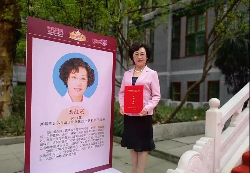 刘红霞教授多年来的成就源于她几十年如一日全身心致力于医疗、教学、科研工作,年近六旬的她,坚持每周三次门诊、一次查房、定期去外地讲学。在关爱患者上,她说一定要有仁爱之心;在培养人才上,她孜孜不倦;在学术和临床研究上,她坚持学无止境。连续数十年帮助基层医院建立皮肤科,开展中医技术培训,并把中医适宜技术推广到南北东疆20多家县乡镇医院,为基层培养了大量中医技术人才,促进了疆内皮肤科中医特色技术的传承和发展,也为疆内边远患者带去希望。