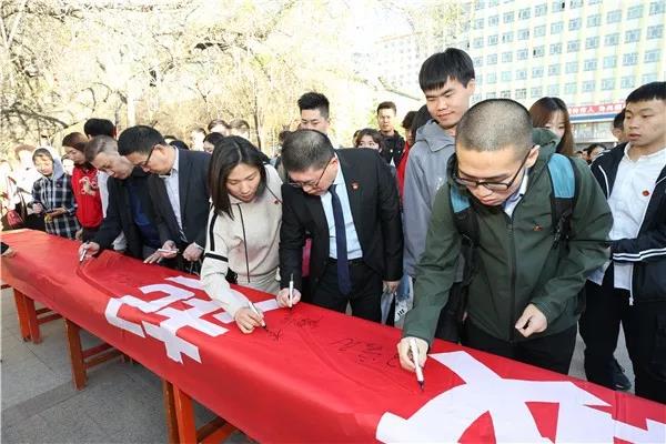 升旗仪式结束后,师生代表在“国家安全教育日”主题横幅上郑重签字,表达了维护国家安全的信心和决心。