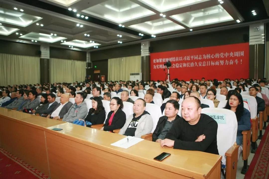 校党委书记高发水讲话,姚文兵副校长主持会议。全体在家校领导,副处级以上干部,校本部全体机关干部,各学院教研室主任、教师代表,第一附属医院职工代表,新校区施工方、设计方、监理方代表参加了会议。