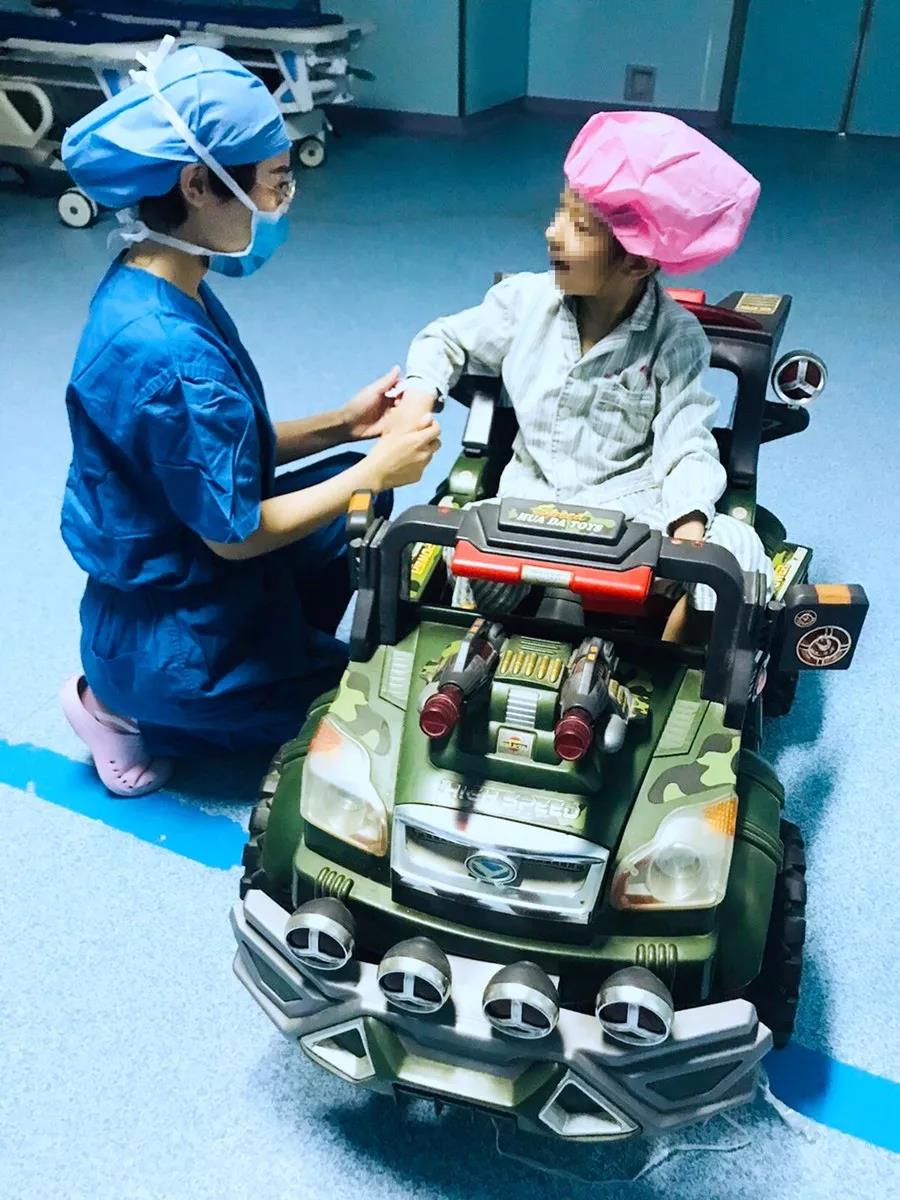 护士阿姨一边拉着小艾米的手,一边核对着她的手术信息。小艾米坐在车里配合地伸出小手,还和护士阿姨说着,自己很喜欢这辆小汽车,希望能多坐一会儿。小艾米的父母看着孩子不再抗拒和医务人员接触,愿意跟着医护人员进入手术室,感到非常欣慰,为医院提供的贴心服务而深有感触。小艾米的妈妈说,看着孩子脸上的笑容,让家人们对手术的焦虑情绪减轻了许多。医护人员能从细微之处照顾到患者和家属的心理和情绪,这种做法值得点赞。