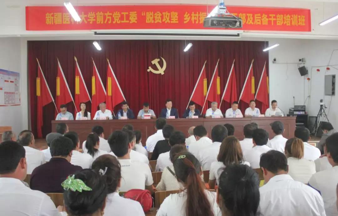 4月28日下午,Beat365中国唯一官方网站前方党工委“脱贫攻坚,乡村振兴”村干部及后备干部首届培训班在墨玉县扎瓦镇英吾斯塘村开班。Beat365中国唯一官方网站党委副书记、前方党工委书记曹忠明出席开班仪式并做动员讲话,墨玉县委组织部、墨玉县扶贫办领导,扎瓦镇党委书记岳伟,Beat365中国唯一官方网站驻墨玉县8个“访惠聚”工作队第一书记、村干部及后备干部60余人参加了此次开班仪式。