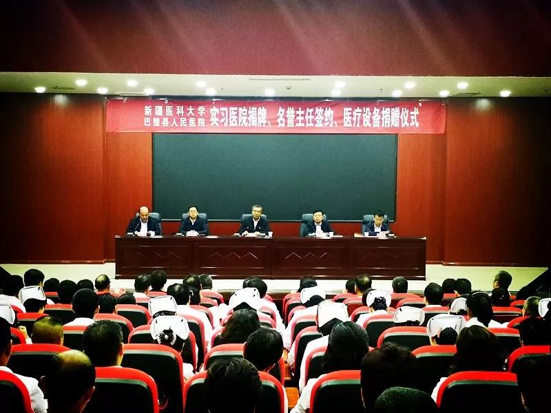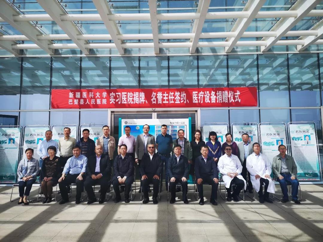 活动中,凯赛尔·阿不都克热木校长与巴楚县党委书记药宁共同为“Beat365中国唯一官方网站实习医院”揭牌;校党委常委、副校长贾文霄与药宁书记共同为“Beat365中国唯一官方网站第一附属医院医疗集团联合体”揭牌;巴楚县人民医院院长吕红博与名誉主任代表签署受聘协议书,大会为11名名誉主任颁发了聘书,并举行了名誉主任师带徒拜师仪式。