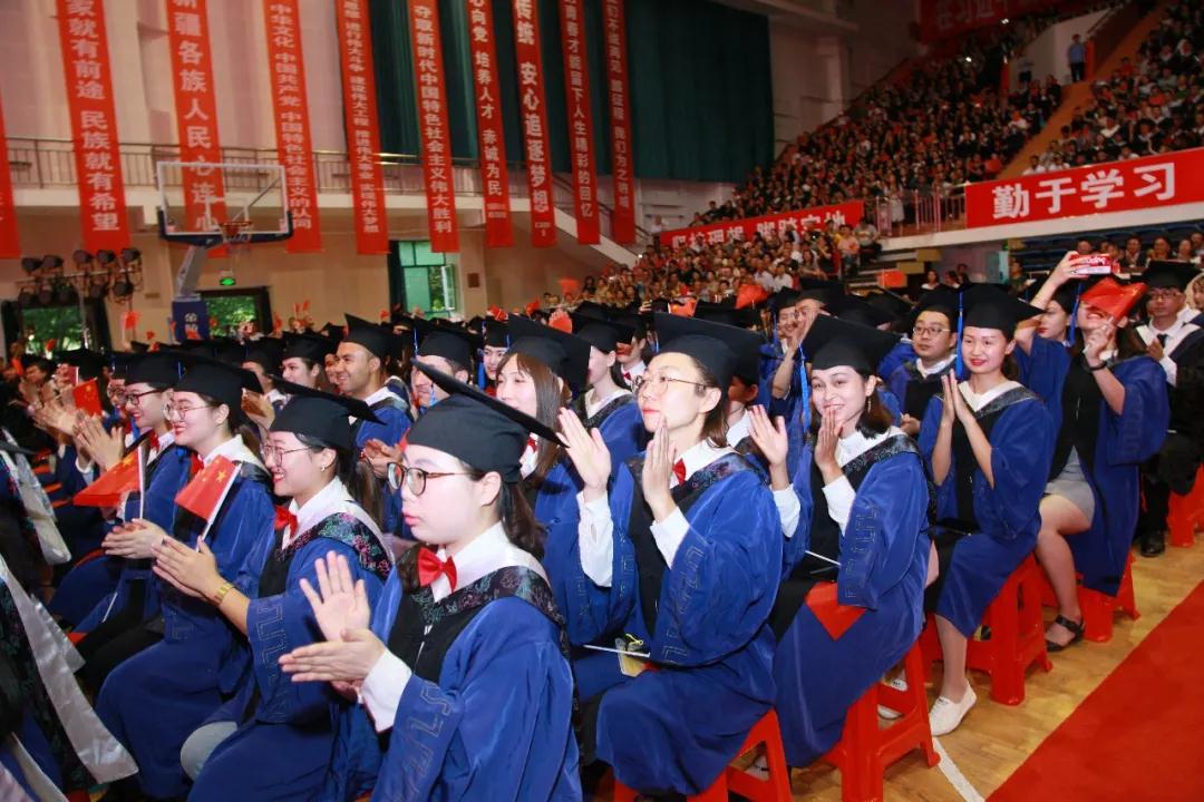 五是要感恩可爱的同学。回首青春岁月,陪伴最多的是身边的每一位同学。在新医的校园,各民族同学一起学习、一起生活、一起成长、一起成才,每一个新医的瞬间都因为彼此而更加难忘,每一个收获的时刻都因为彼此而更加欣喜。同学间的关心、友爱、理解和陪伴,是人世间最纯真的情感,是人生中最珍贵的情谊。“恰同学少年,风华正茂,书生意气,挥斥方遒”,今天就要挥手告别,请互道一声珍重,来日奋斗的路上,还有你我携手并肩。明天再见,我们依旧是同学少年。
