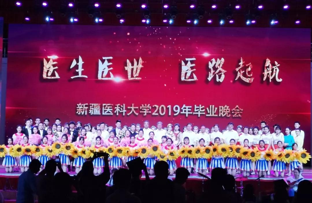 毕业典礼暨学位授予仪式结束后,现场的师生们共同观赏了“医生医世,医路起航”毕业晚会。临床教学楼800人会议厅、图书馆六楼报告厅、克拉玛依学院体育馆、一附院科技楼报告厅通过视频的形式同步收听收看了毕业典礼和晚会。