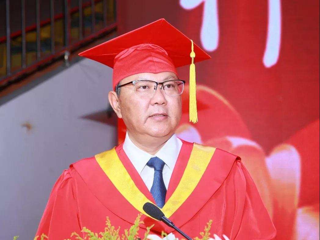 在热烈的掌声中,校党委书记高发水深情寄语毕业生们。高书记在为同学们那些珍贵的、可爱的、难忘的,更是拼搏的、奋进的青春年华点赞、喝彩的同时,告诉同学们,毕业不是圆梦的终点,而是追梦新的起点。在面对新的机遇和挑战时,勉励同学们要懂得感恩、要担负使命、要学会担当。