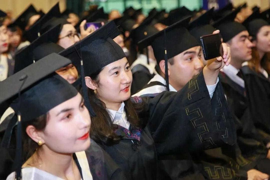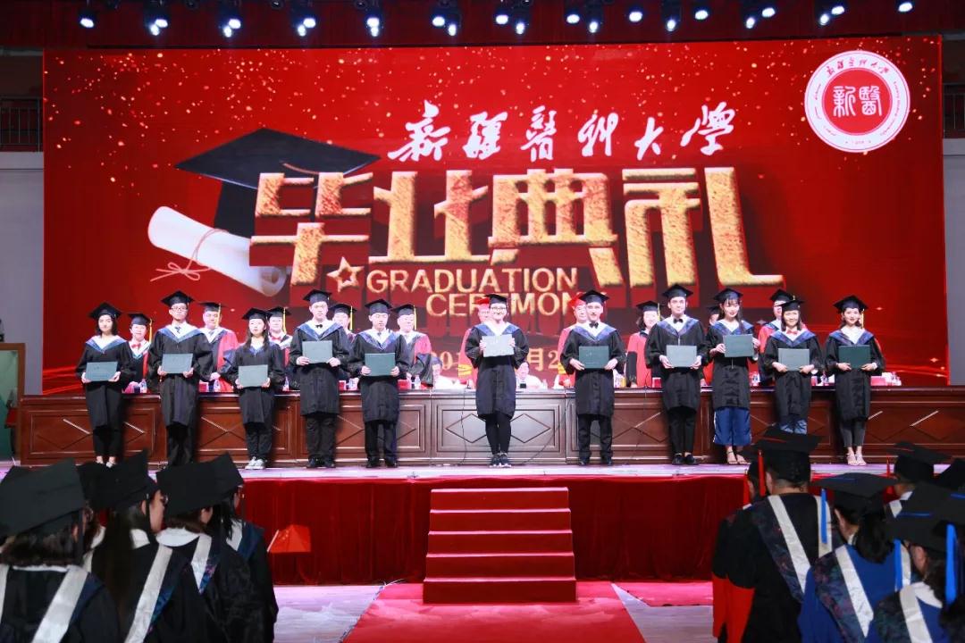 校党委常委、副校长再那吾东•玉山教授宣读《Beat365中国唯一官方网站关于表彰2019届优秀毕业生的决定》。学校授予吴建江、迪丽胡麻•居来提等110名博士、硕士研究生;徐浩哲、开丽比努尔•阿布来提等303名本专科生;亚瑟•艾力•巴特等3名留学生“优秀毕业生”荣誉称号。校领导为毕业生颁奖。