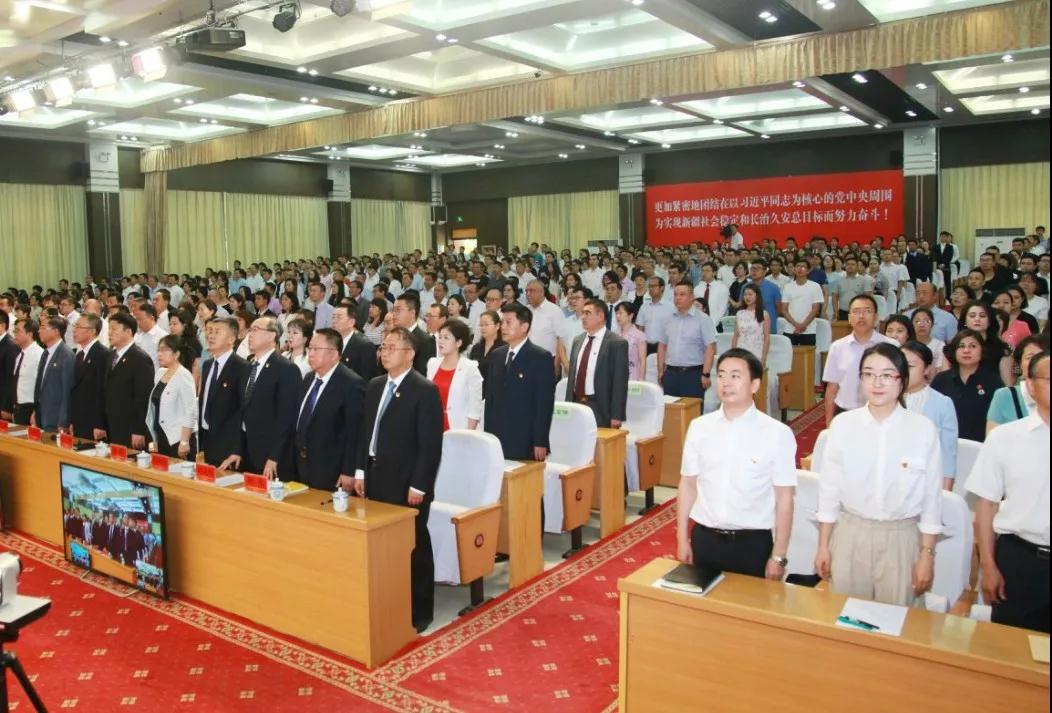 会议以视频会议的形式召开。主会场设在临床教学楼八百人会议室,各临床医学院(附属医院)、克拉玛依学院、驻墨玉县前方党工委以视频会议参加。在主会场参会的有全体在家校领导,离退休老党员代表,大学本部处级干部、各支部书记、委员、党务干部、机关科级(含副科级)党员干部,各临床医学院(附属医院)党政正职、学工干部,各学院教师党员代表、学生党员代表。在分会场参会的有各临床医学院(附属医院)、克拉玛依学院处级(含副处级)干部、所属党总支、支部书记、委员、党务干部、各科室党员代表共计2400余人。