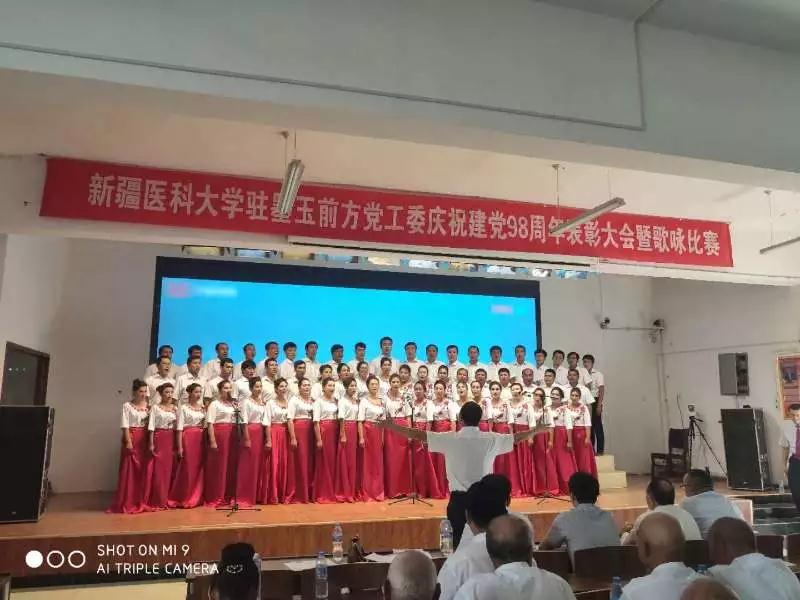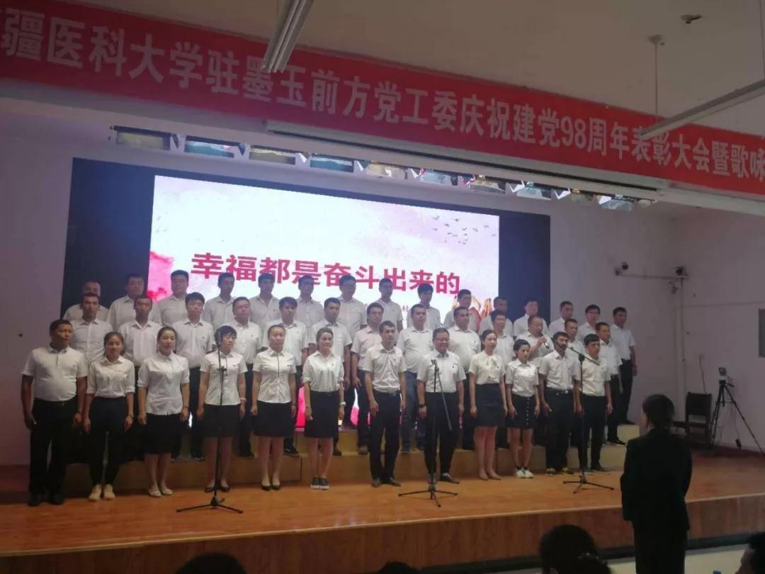 6月30日下午,Beat365中国唯一官方网站驻墨玉县前方党工委在扎瓦镇英吾斯塘村举行庆祝建党98周年表彰大会暨歌咏比赛。Beat3658支“访惠聚”驻村工作队、接待站、支教团、深度贫困村扶贫专干、扎瓦镇政府干部及各村村民党员代表共计500百余人参加。