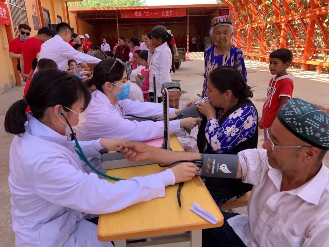 在这个夏天,新医学子带来的不仅仅是精彩的演出,更是实实在在的惠民服务,送药义诊,帮助村民们解决最紧迫的问题,他们身体健康,快乐平安是每一位新医师生的心愿,新医学子用他们最朴实的言语、最真实的行动、最绵薄的力量助力和谐新疆。
