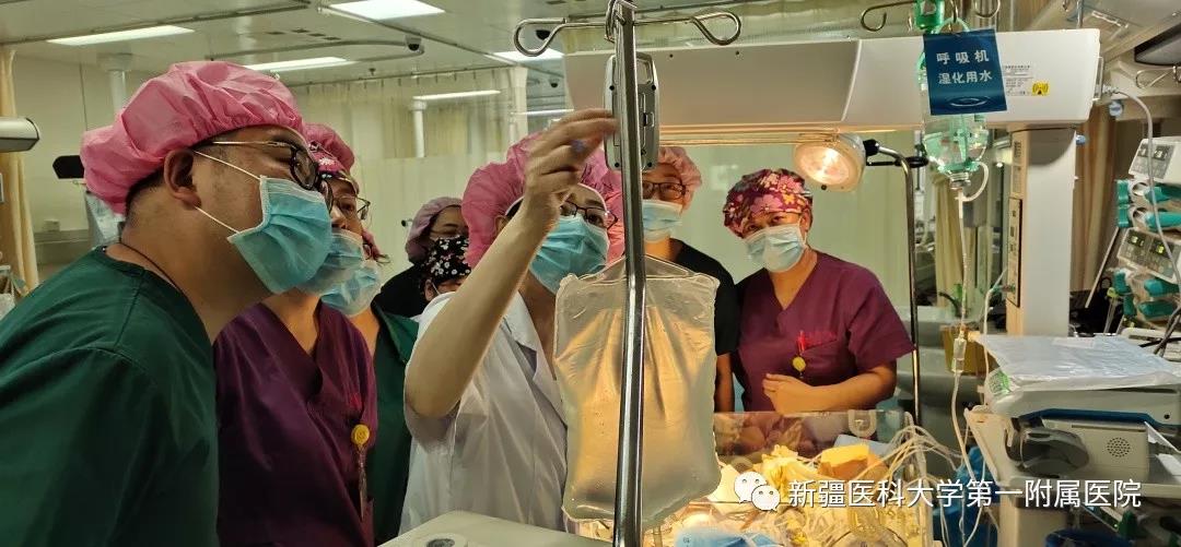 术后,宝宝爱的接力棒传递到了重症医学中心,重症二科十余人组成了一支有着深厚专业知识、具备丰富经验的医护团队,精心守护着这个小生命。因病情严重,宝宝术后10小时出现尿量减少,存在肾脏衰竭的风险!重症医学中心主任于湘友教授,医院援疆专家、清华长庚医院谢志毅教授、重症二科宋云林主任经认真讨论后,决定给宝宝进行腹膜透析治疗。腹膜透析在重症监护室并不少见,可是为这么小的先心病危重患儿透析还是第一次,大家轮班看护,加大对患儿的置管护理和透析机的管理力度,降低了堵管和并发症的风险,经过一周的透析,患儿的脏器功能得到了改善,成功脱机拔管。