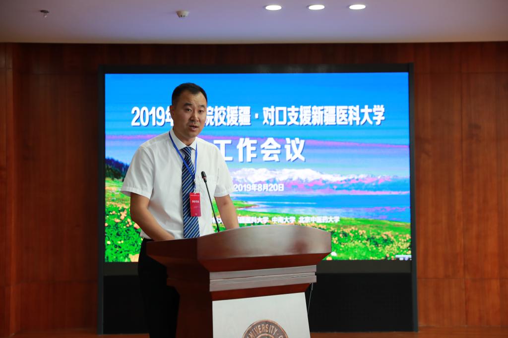 吉林大学党委书记杨振斌在致欢迎辞时指出,对口援疆是党中央、国务院做出的重大决策部署,对口支援Beat365中国唯一官方网站也是各兄弟院校必须完成的政治任务和义不容辞的神圣使命。吉林大学和Beat365中国唯一官方网站在多年的对口支援工作中积累了深厚的感情,今后将认真学习贯彻以习近平同志为核心的党中央对援疆工作的重要部署,以高度的政治责任感和使命感,坚持问题导向、需求牵引,严谨论证、注重考核,重点支持、精准扶持的援疆工作原则,支持Beat365中国唯一官方网站的建设和自治区医疗卫生事业的发展。