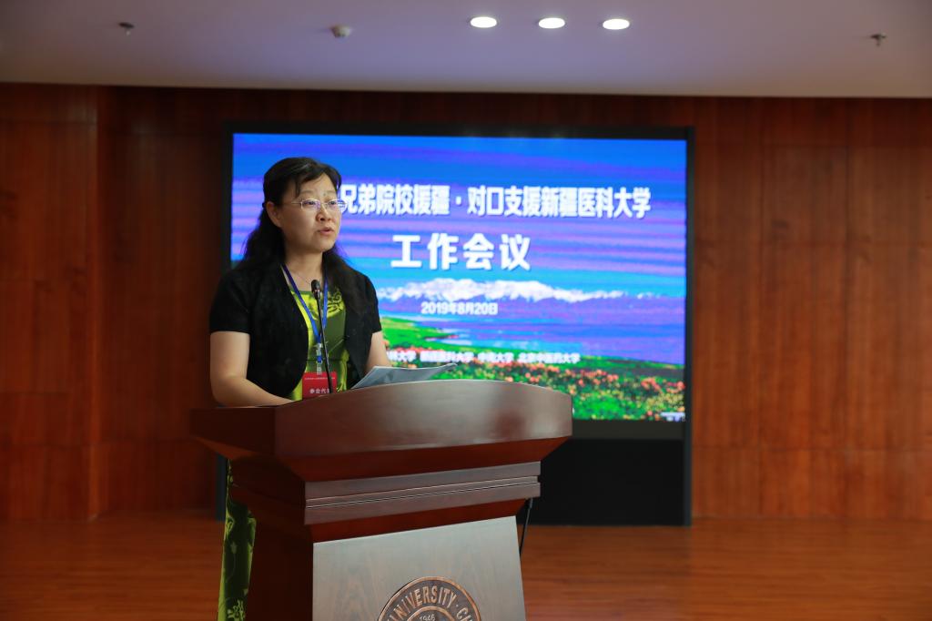 中南大学常务副校长胡岳华、北京中医药大学副校长陶晓华、中国药科大学副书记戴建君、上海中医药大学副校长胡鸿毅等分别代表支援高校介绍了援疆工作的成果和经验。中南大学李映兰、北京中医药大学肖连宇、中国药科大学李飞、吉林大学祁宝昌作为援疆干部代表做了发言。