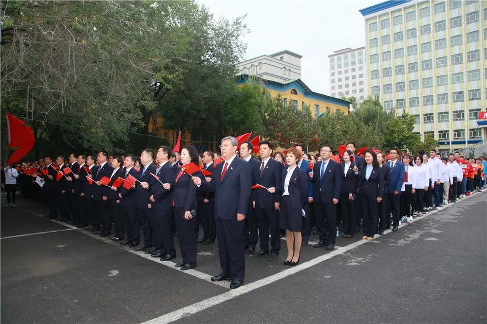 校党委书记高发水发表国旗下的讲话。他说,新中国的70年,是历经艰辛、创造辉煌70年,是浴血奋战,从胜利走向胜利的70年,是艰苦奋斗,创造一个又一个人间奇迹的70年,是中华儿女怀着对祖国最深沉的爱,团结一心、无私奉献、敢于牺牲、英雄辈出的70年。我们的祖国从没有像今天这样欣欣向荣、蒸蒸日上。我们的民族从没有像今天这样扬眉吐气、自信满怀。我们的人民从没有像今天这样幸福安康、意气风发。