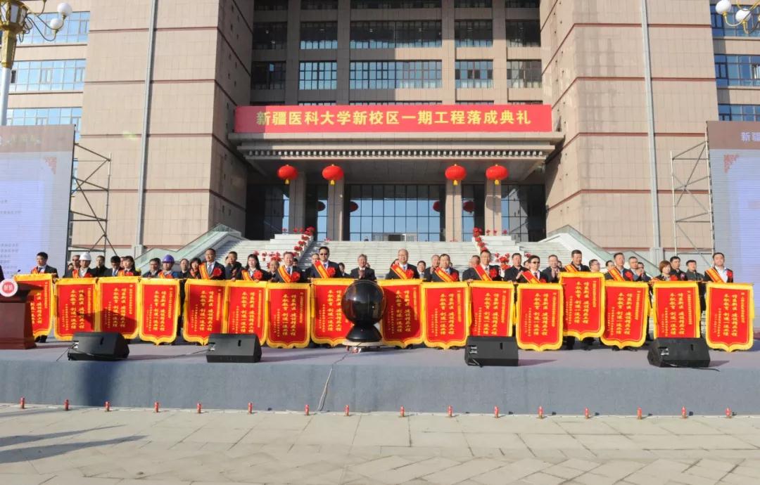 师生代表基础医学院副院长林晨和公共卫生学院迪力木热提·努尔麦麦提向新校区建设者们团结协作、攻坚克难的勤劳付出表达了敬意,被新校区建设者艰苦奋斗、一往无前的精神深深震撼。他们表示,要以新校区建设者的奉献精神为强大动力,众志成城、团结一心,在今后的工作、学习中不忘初心、牢记使命,为建设新时代的辉煌新医贡献力量。