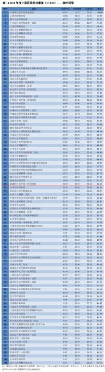 评价结果分为两部分,一是综合科技量值;二是学科科技量值,涵盖心血管病学、呼吸病学等共29个临床医学二级学科及部分三级学科。
