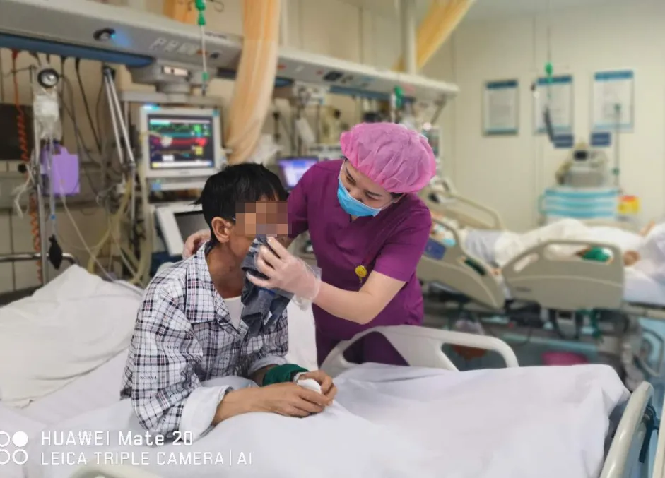 “先救人!”医护人员立即展开生死之门的守卫战,同时帮助他申请援助资金,在24小时内进行了手术。术后,患者还是不配合治疗,医护人员不仅精心为他治疗护理,还从生活上关心他,为他购买生活用品和每日的饭菜,从心理上开导鼓励他,协调让他的儿子来到他的床前,一起鼓励他配合治疗、早日康复。在大家的共同努力下,患者病情逐渐好转,即将转入普通病房。