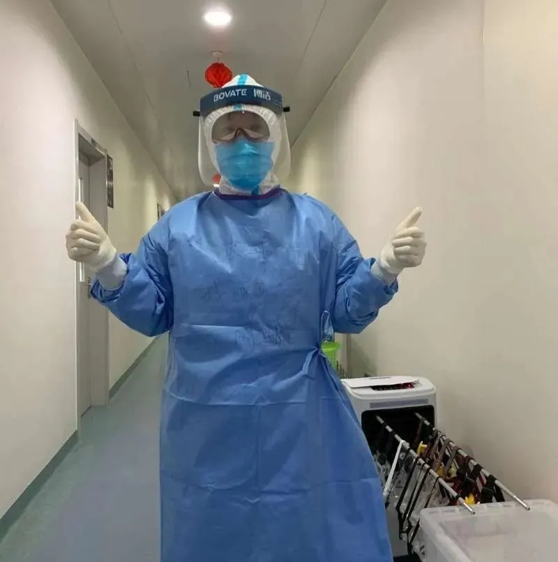 还记得,从最初穿防护服的40多分钟到现在20分钟就能穿戴整齐三层十三件防护用品;从最初眼罩内雾气蒸腾到现在能清晰操作;从最初戴上三层手套手感木讷,到现在熟练精准,我也在不断进步。每次从隔离区内出来,手部消毒十三次,脱下十多件防护用品,这时我能深切的感受到自由自在的呼吸是件多么美好的事情!等疫情过后,希望在不用穿脱防护服的清晨能大口喝一杯水!