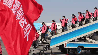 16点10分,在人们热切期盼的目光中,新疆首批支援湖北医疗队乘坐的飞机平稳降落在乌鲁木齐地窝堡国际机场。