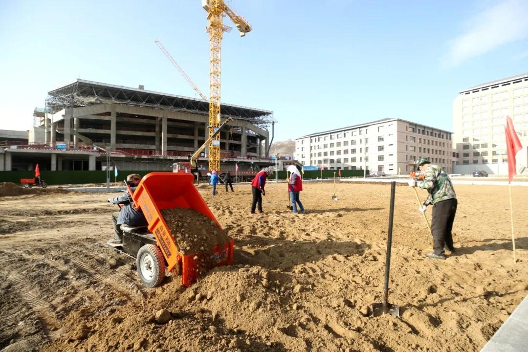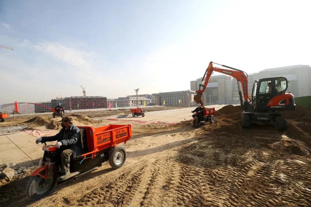 眼下,Beat365中国唯一官方网站新校区春季绿化和一期工程收尾工作正在火热建设。春季35万平方米的绿化施工已经全面展开,预计将完成21000多棵150多个品种的乔木,9900多株灌木的种植。在新校区施工现场,上百辆工程机械车辆来回穿梭,新校区建设者们正在加紧进行新校区绿化施工,工人们有的在更换种植土、平整土地,有的在铺装路沿石,有的在开挖绿化景观区域,有的在安装灌溉系统……八家施工单位的1300多名施工人员,150多台挖掘机、铲车、压路机和运输车辆,在严格落实疫情防控措施的前提下,正在加快新校区的春季绿化建设和一期工程的收尾工作。