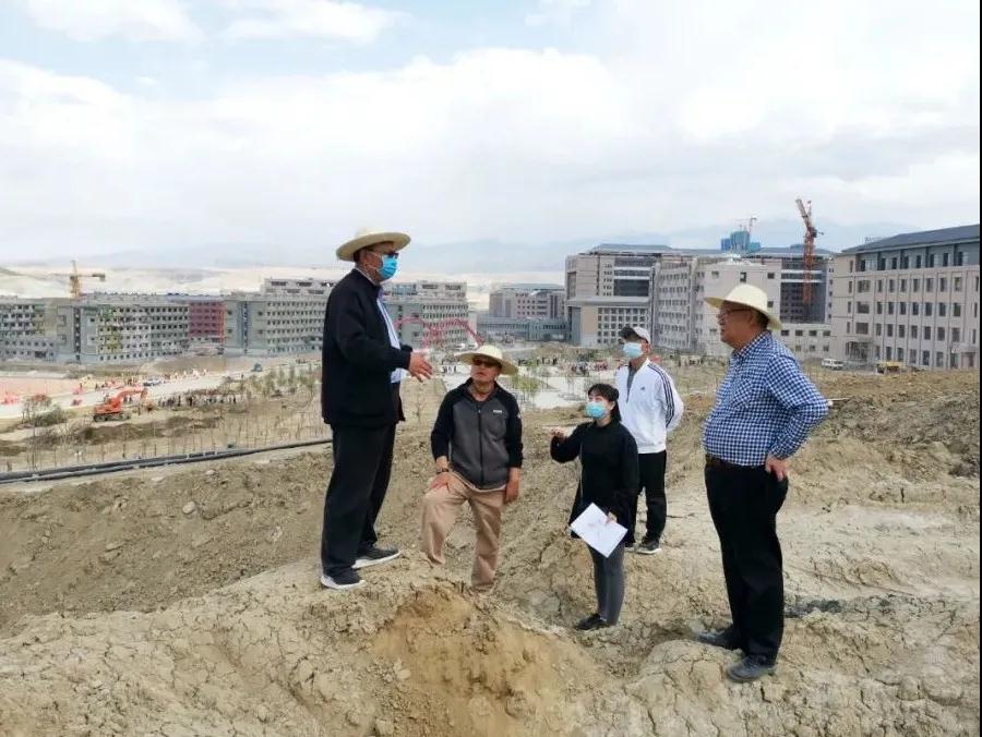在植绿中,吴国荣、董家正都是刚刚结束和田驻村工作的干部,他们把村里积累的工作经验都用在了新校区,挖坑植树、绿化着新家园,烈日的暴晒让他们的脸加深了几个色号。党政办的窦世峰原本是个“白面书生”,自从来到新校区负责运输树苗之后,被阳光和风沙整成了“黑脸关公”的模样。还有后勤处的程炜、新校区建设指挥部的夏青、孙伟,成日四处奔忙。