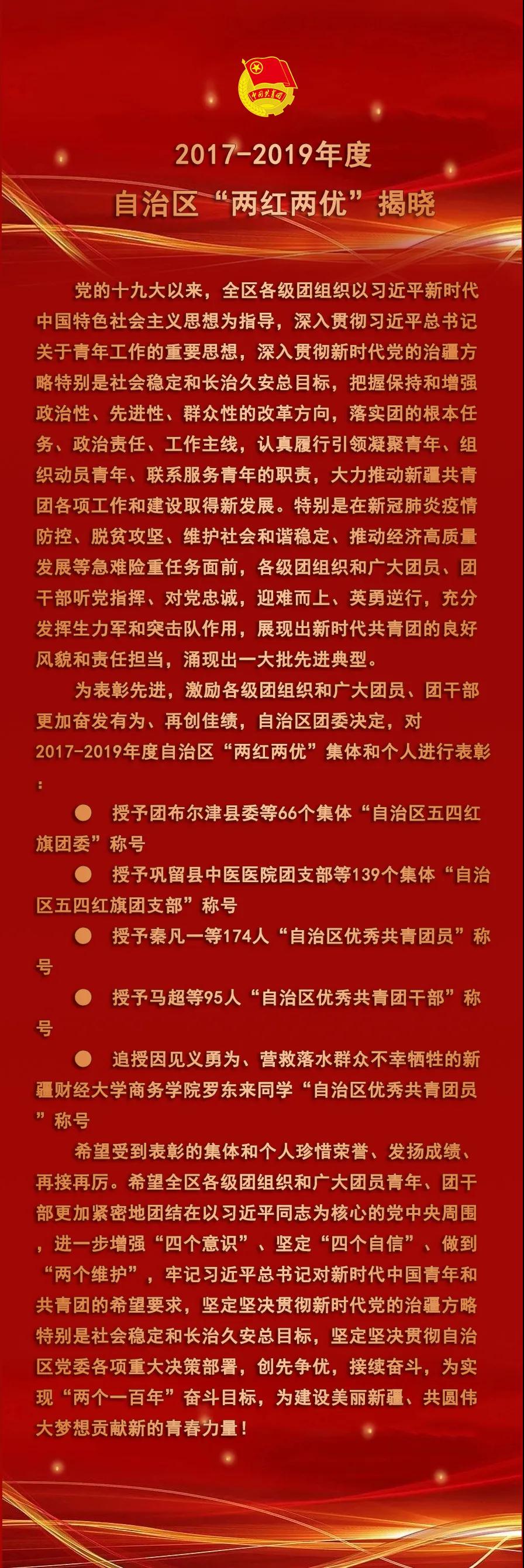 2017-2019年度“自治区优秀共青团员”谢睿,Beat365中国唯一官方网站第五临床医学院临床医学2017级6班学生顾亚龙,Beat365中国唯一官方网站医学工程技术学院生物医学工程教师