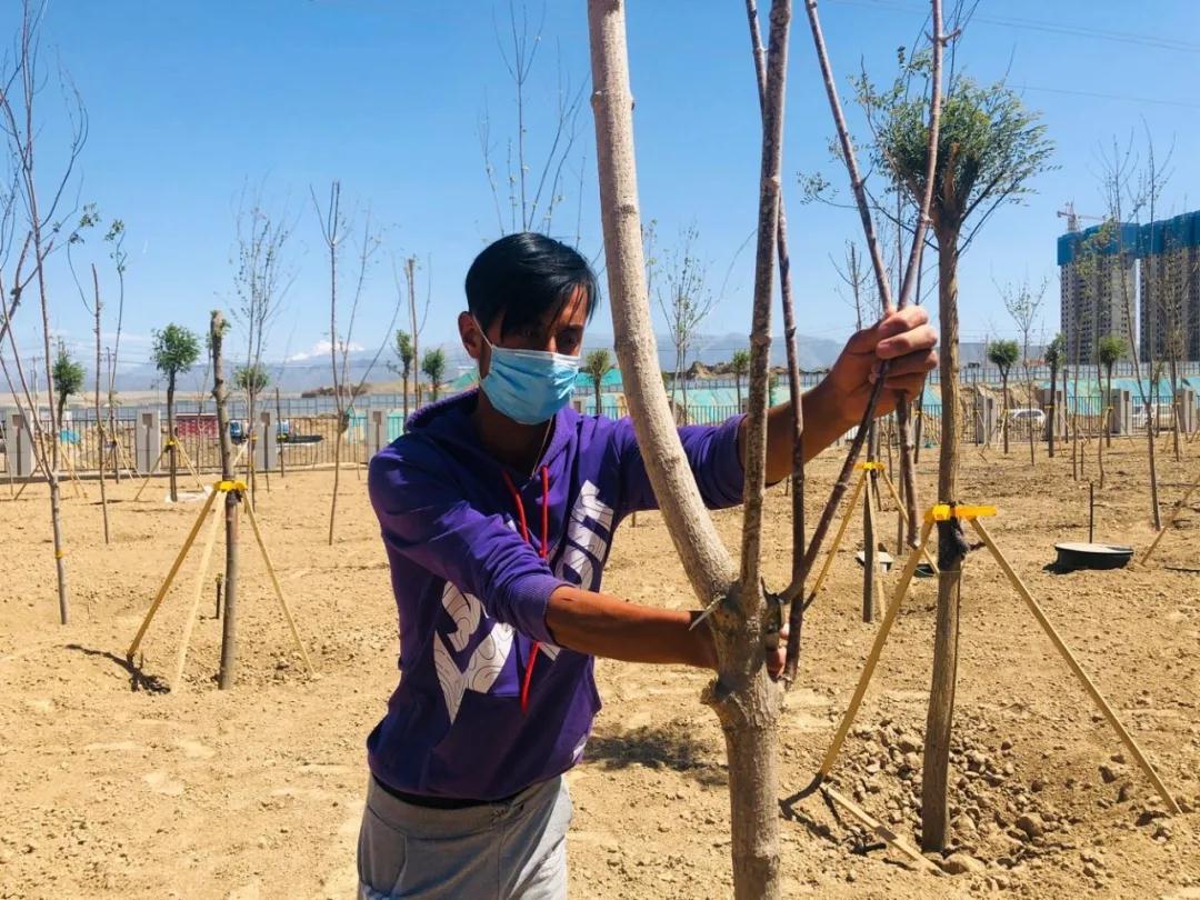 看着新校区一天天变绿变美,数着新校区即将迎来新医师生们的日子,麦麦提艾力内心有些小激动,“我们现在精心养护这些树苗,盼着它们快快长大,等到师生们来到新校区,给大家呈现一个美丽、绿色、舒心的环境,我能做一份贡献,感到很骄傲!”