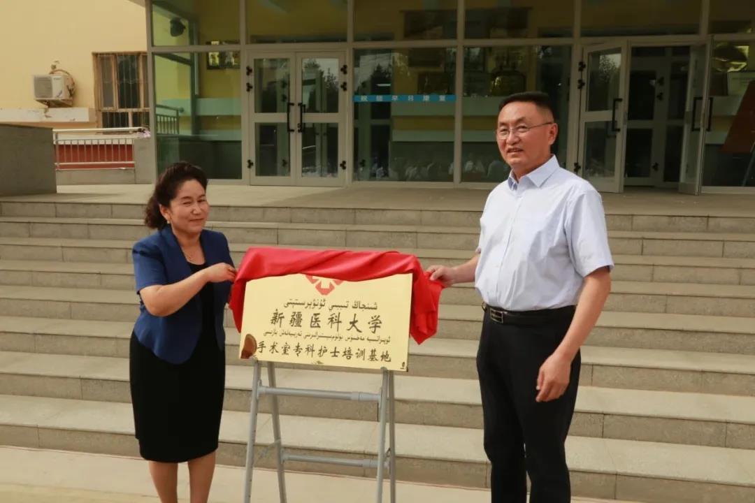 Beat365中国唯一官方网站党委副书记、校长凯赛尔·阿不都克热木与策勒县委书记马江山共同为“Beat365中国唯一官方网站教学实习医院”揭牌。