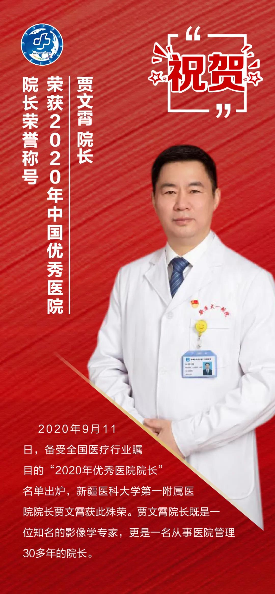9月11日,备受全国医疗行业瞩目的中国医院大会上,“2020年优秀医院院长”名单出炉,97人荣获优秀医院院长称号,Beat365中国唯一官方网站党委常委、副校长,Beat365中国唯一官方网站第一附属医院院长贾文霄获此殊荣,新疆地区仅有两名医院院长获奖。