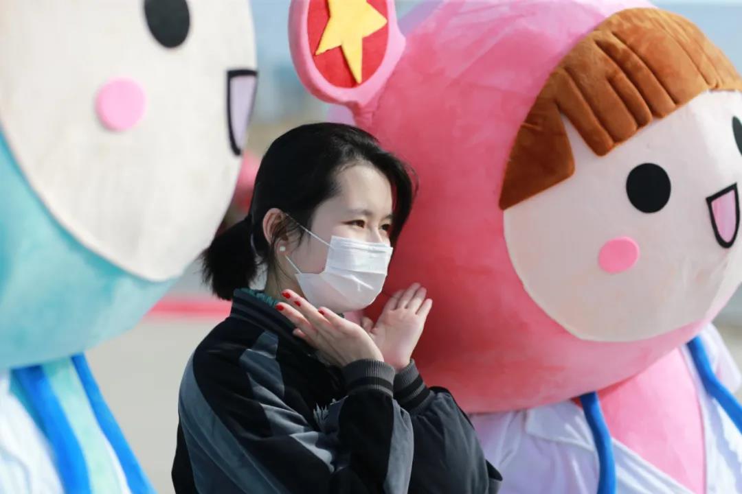 精神抖擞的新医志愿者和后勤工作者们