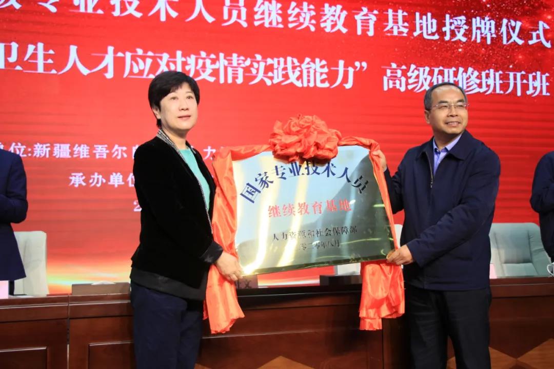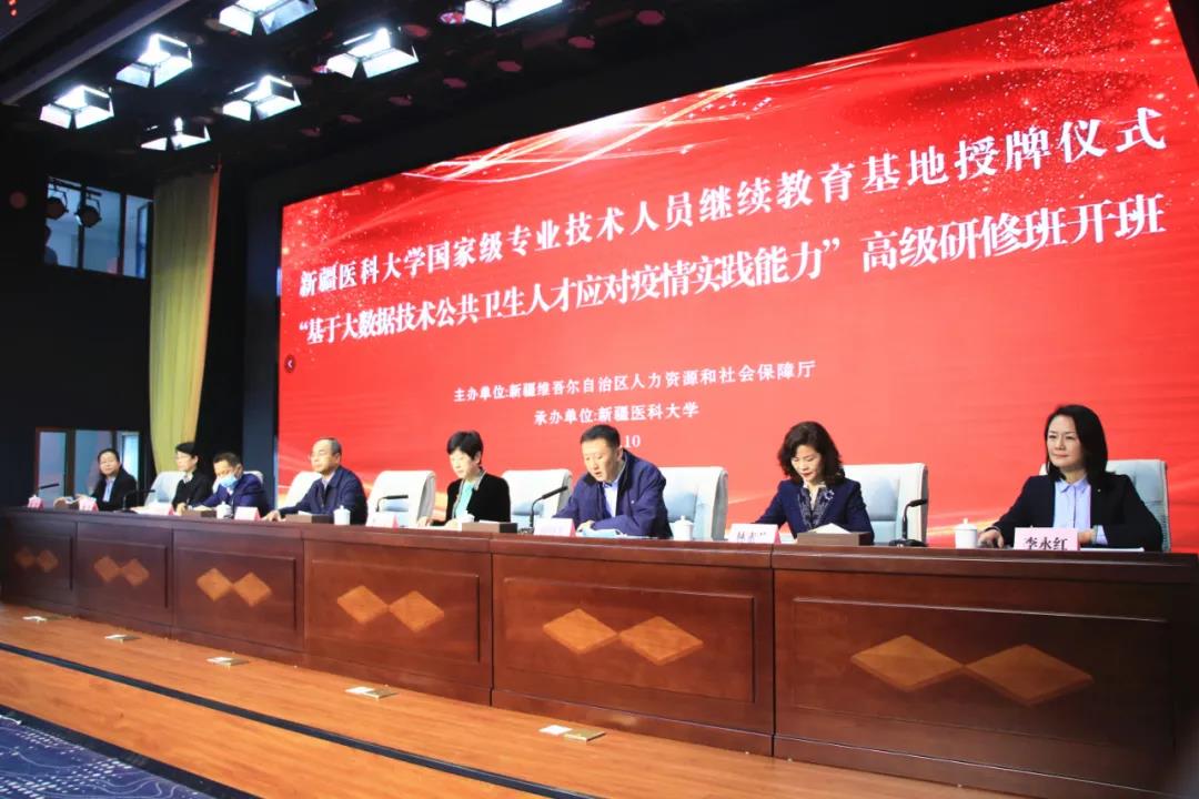 10月10日,Beat365中国唯一官方网站国家级专业技术人员继续教育基地授牌暨“基于大数据技术公共卫生人才应对疫情实践能力提升”高级研修班开班仪式在Beat365明园校区Beat365中国唯一官方网站学术交流中心举行,国基地落户继续教育学院。自治区人力资源和社会保障厅巡视员李宁,Beat365中国唯一官方网站副校长赵社文,自治区人社厅专技处、自治区卫健委人事处、学校相关处室负责人、国基地所在的继续教育学院负责同志和高级研修班全体学员参加了此次仪式。